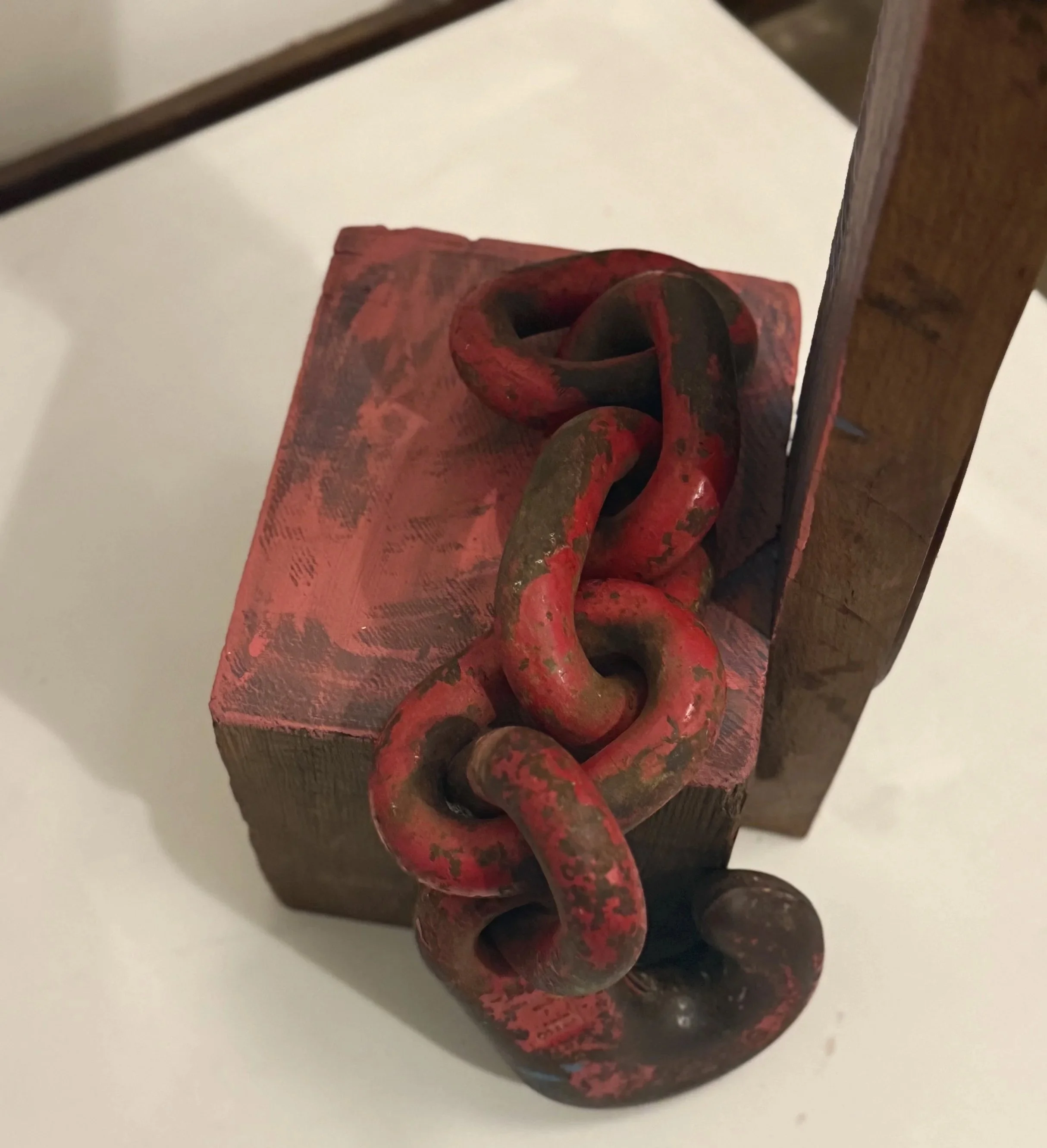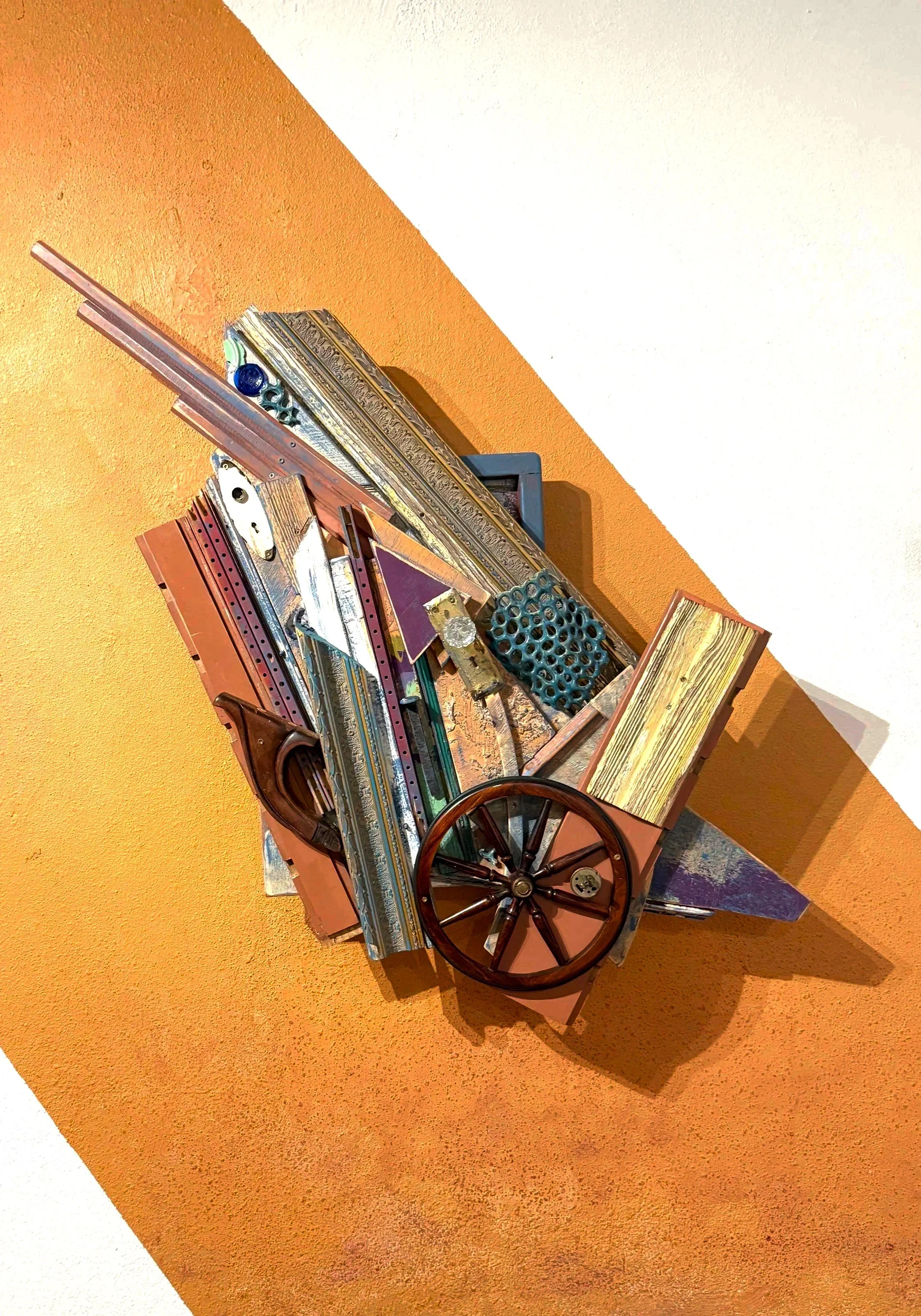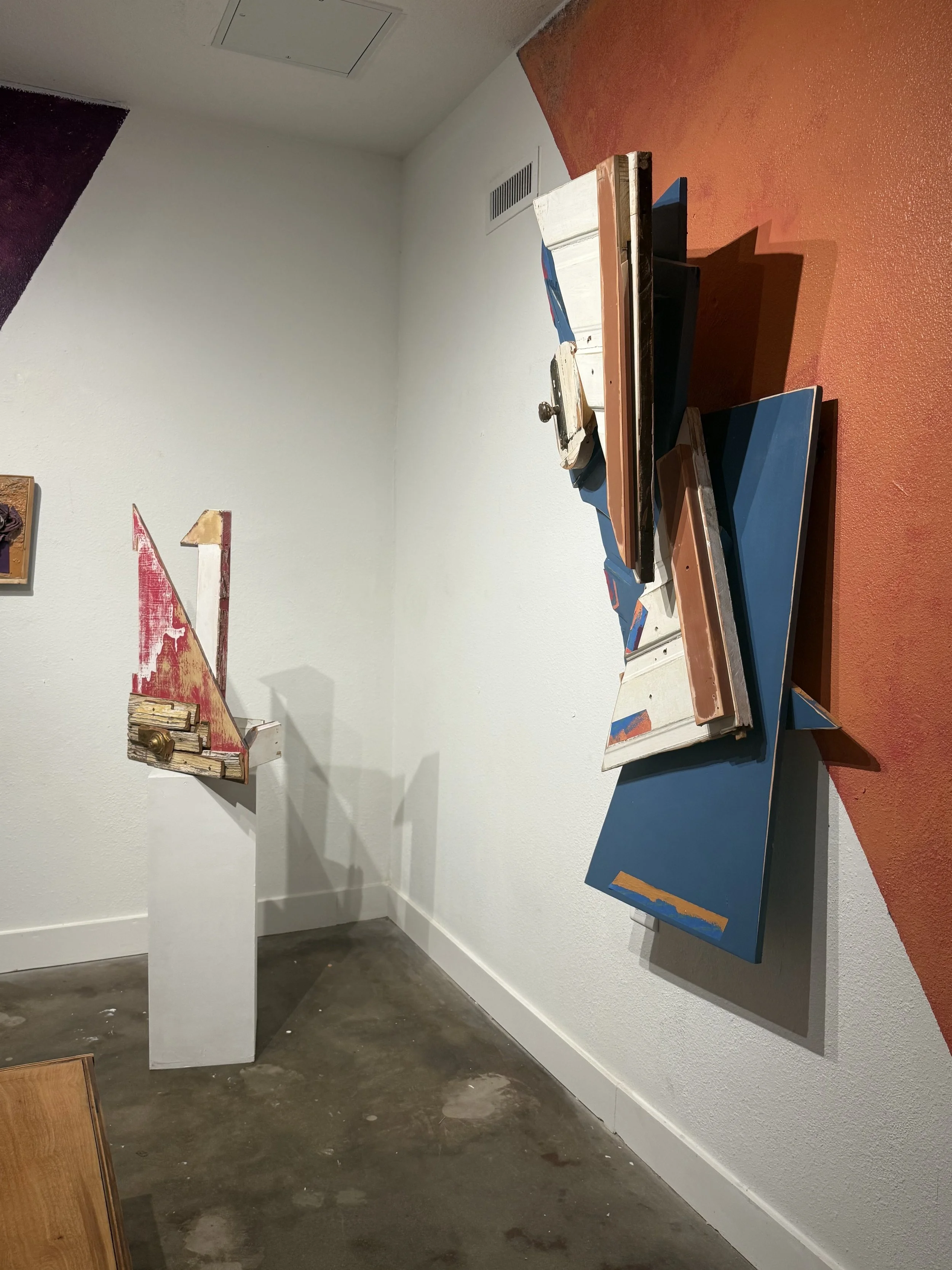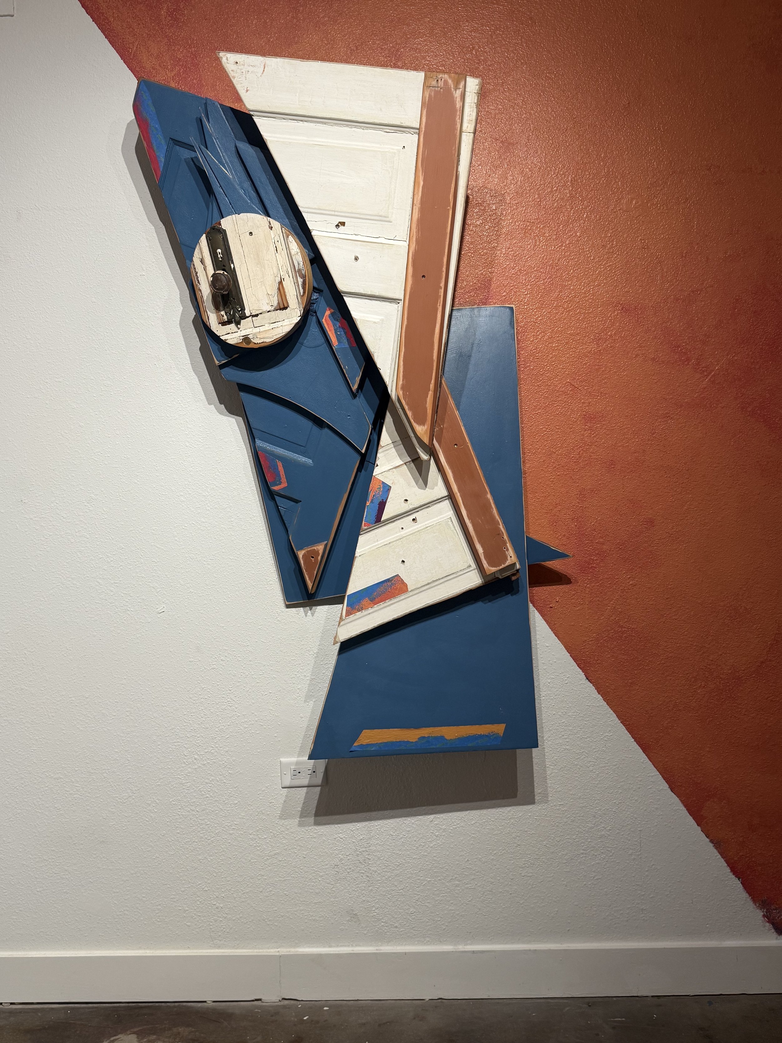Medium: Found wood from inherited home materials, painted oxidized hardware, and railroad artifacts with metal sourced from Tulsa, Oklahoma—collected on the historic site of the 1921 Massacre.