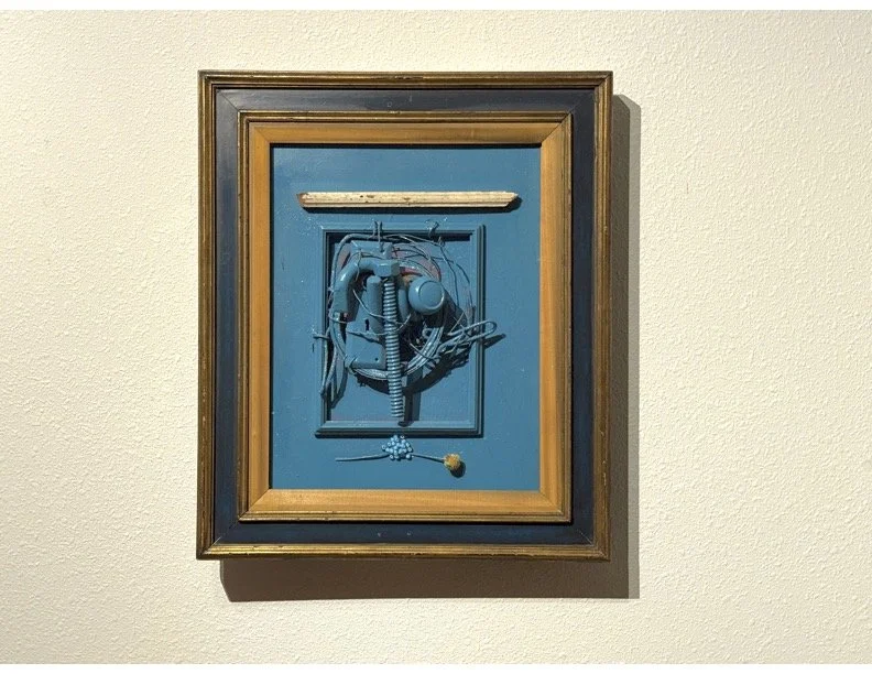 With a frame made by Hall’s father, the oxidized textures and reclaimed materials evoke stories carried in the body, the land, and the objects that survive us. At its center, the portal suggests that transformation begins not in striving but in release. By letting go, we step into the lives we most desire—lives shaped by openness, clarity, and a quiet kind of courage. As with all of Hall’s found-object sculptures, this work listens to the wisdom of its materials. In their weathered beauty, KNOW)ING reveals surrender not as loss, but as the deepest form of becoming.